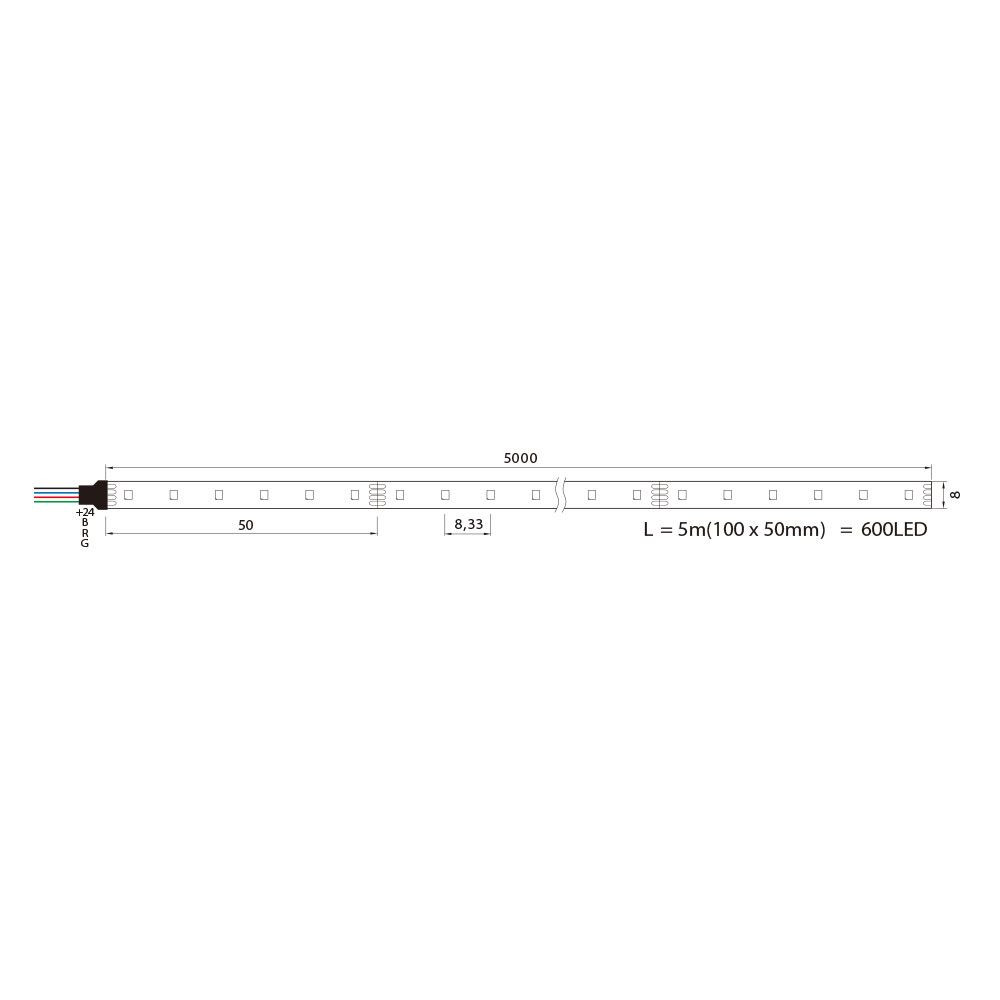 LED szalag, tekercs 5 m, 24VDC, RGB ,25000h,120°; IP20; 8x5000mm; 18W/m,120 SMD LED/m