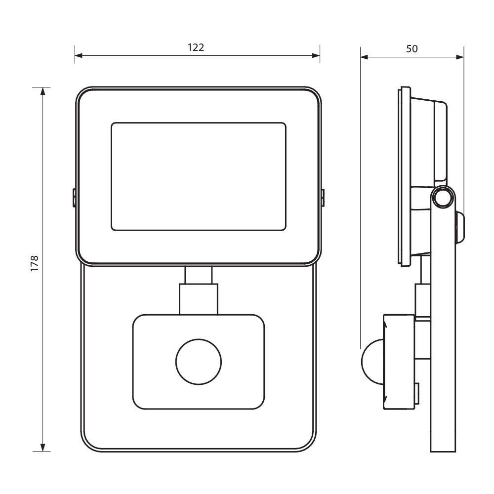 LED-es reflektor; 20W; 1800 lm; 6400K (nappali); 230V; 110°; IP44; 122x178x50mm; felületi szerelés; 20000h; fekete; LED fényforrás; nem szabályozható; alumínium; -25÷+40°C