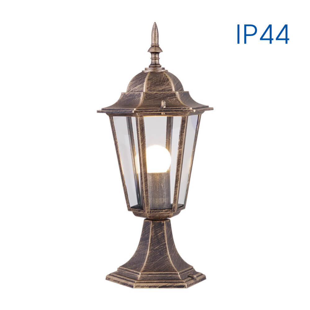 Lámpa; 230V; E27; IP44; 150x150x430mm; felületi szerelés; max 1x60W; antik sárgaréz; nem tartalmaz fényforrást; alumínium