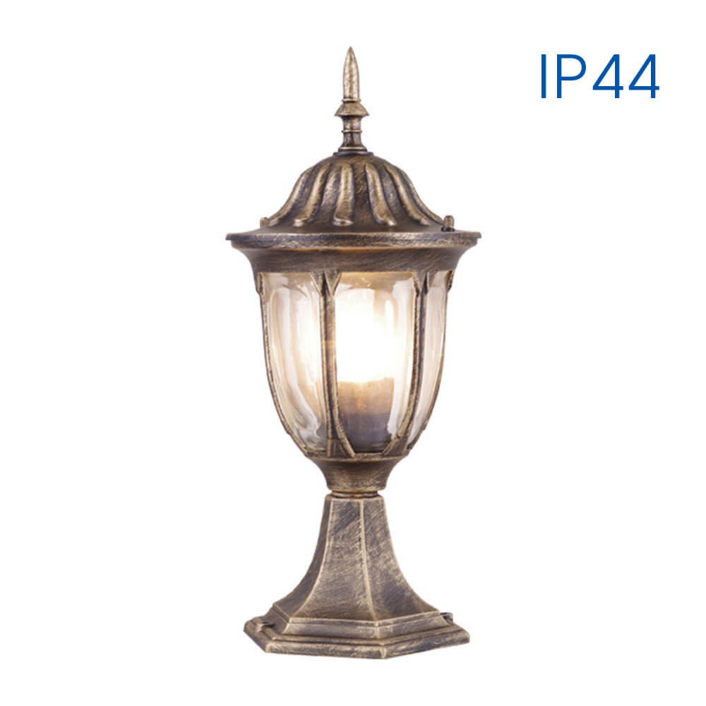 Lámpa; 230V; E27; IP44; 163x163x430 mm; felületi szerelés; max 1x60W; antik sárgaréz; nem tartalmaz fényforrást; alumínium